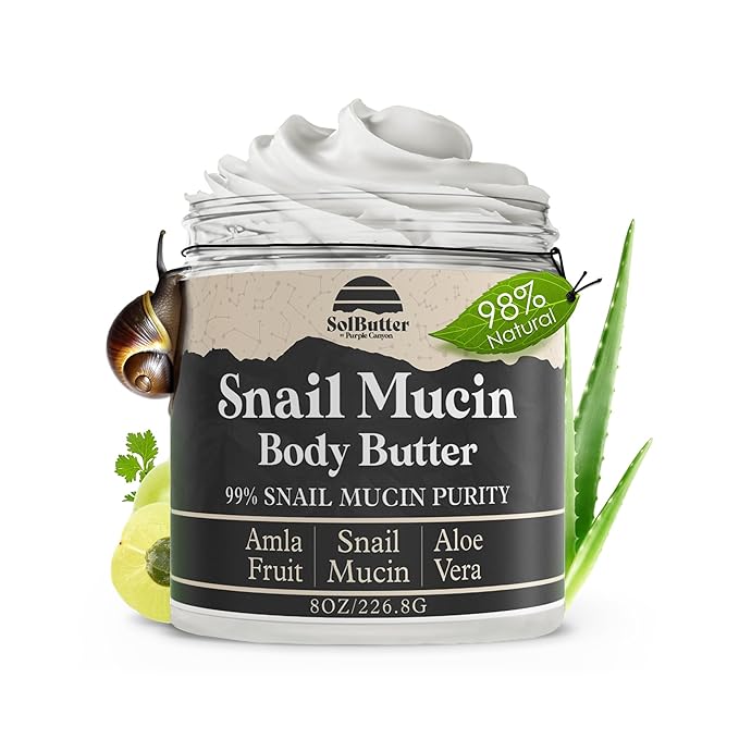 PURPLE CANYON 99% Snail Mucin Body Butter 8oz | Reduce Blemishes, Dark Spots, and Wrinkles for Radiant Skin | Skin Care Snail Cream Moisturizer Dry Skin Repair