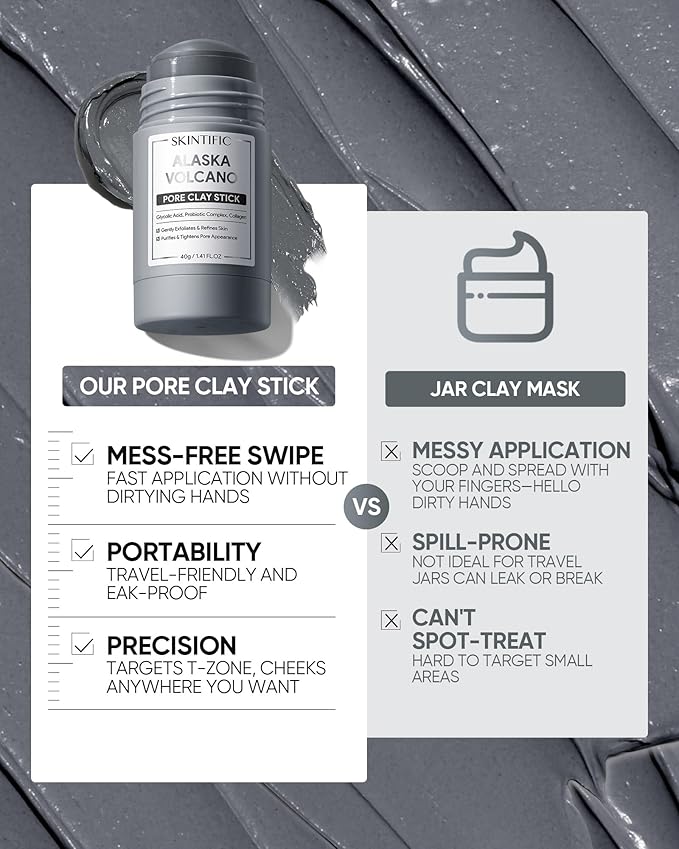 Deep Pore Cleansing Blackhead Remover Face Mask Stick, Mud Mask with Natural Alaska Volcano Clay, Gentle Exfoliating, Smoothing Skin, Non-Drying, Skincare Facial Mask