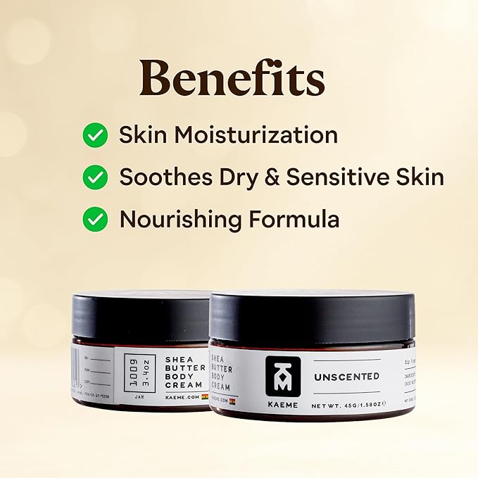 - Fragrance-Free & Safe for Sensitive Skin: Free from harsh chemicals and artificial fragrances, Kaeme Unscented Shea Butter is hypoallergenic and perfect for sensitive skin, eczema, or psoriasis.