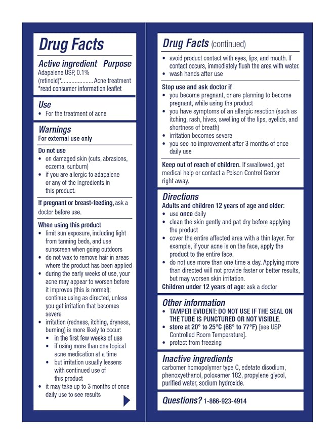 - Active component: contains 0.1% adapalene, a retinoid renowned for its acne-combating properties, prescription like potency.