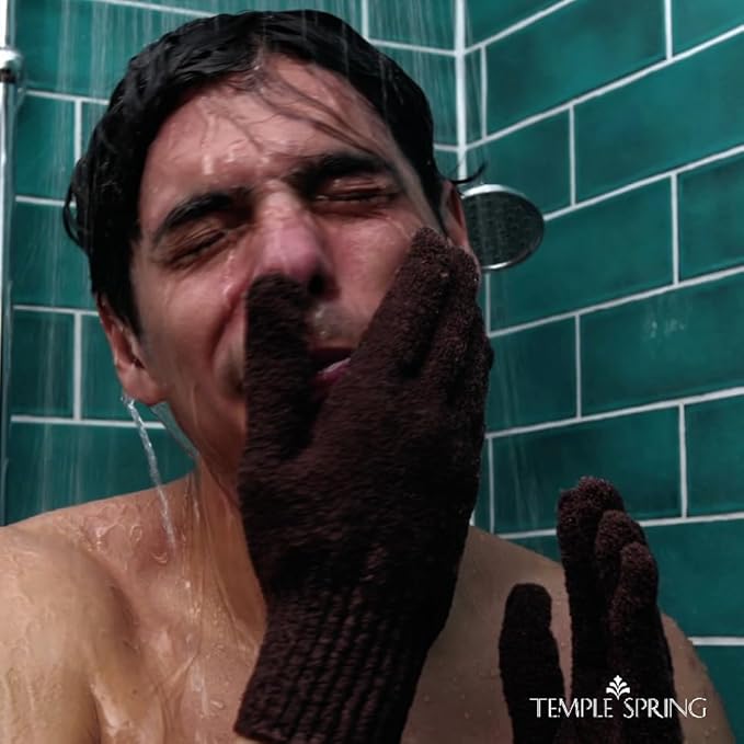 - HAVE A REAL GOOD SCRUB - Our most popular exfoliating gloves are now available in Extra Large! The Temple Spring exfoliating gloves deeply cleanse and exfoliate your skin, making them an essential part of your bath products collection. These versatile gloves are suitable for all skin types and perfect for those seeking a premium body exfoliator.