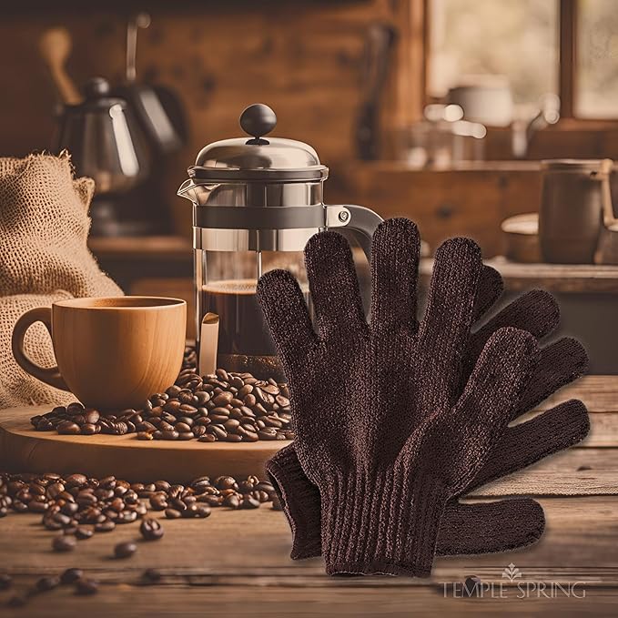 Temple Spring Exfoliating Glove, Rayon Bamboo Exfoliating Body Scrubber, Loofah Washcloth, Exfoliate Loofa Shower Scrubber, Body Exfoliator Scrub, Shower Loofah Bath Sponge - Coffee XL