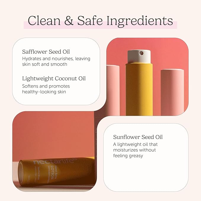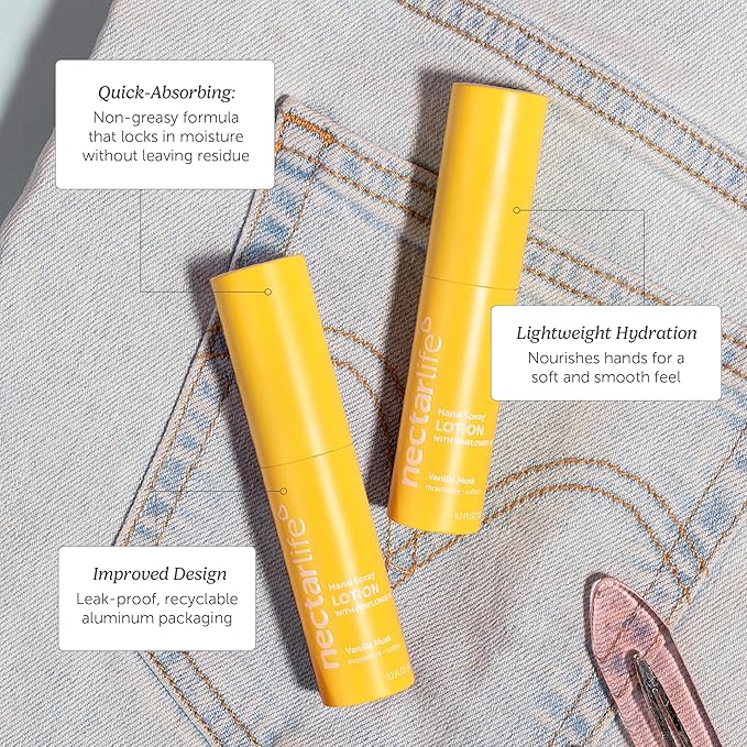 Nectar Life Hydrating Hand Spray Lotion, Vanilla Musk Scent, 10ml Travel Size – Lightweight, Non-Greasy, TSA-Friendly Moisturizing Mist