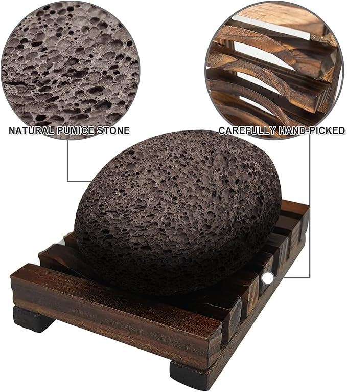 - Each scrubber stone for feet with an organic wooden bath tray and pretty box. They are well packed in a hard carton for reliable during transportation. So it can be directly given as a great gift for your beloved