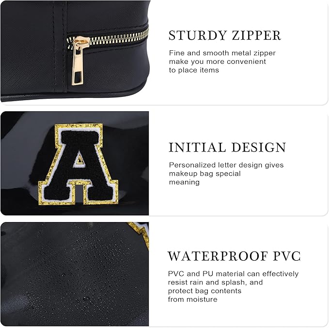 YOOLIFE Initial Makeup Bag Travel Toiletry Bag Clear Makeup Bag Cosmetic Bags Travel Essentials Gifts for Girls Teen Girlfriend Teacher Birthday Birthday Gifts for Kids Black Graduation Gifts A