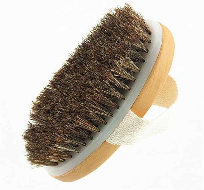 Wooden Soft Horsehair Mane Natural Bristles Bath & Shower Brush, 5x2.8 Inch Oval Shape Dry Body Brush Scrubber for Exfoliating, Detox and Cellulite, etc. (Brown Horsehair)