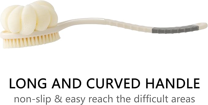 - Large "S" Curved Anti-Slip Handle :The body brush handle is "S"curved and enough large, allowing you to hold it easily. There is a non-slip silicone on the handle.And the 16" long handle that can allow you to reach every areas such as the back and the feet.