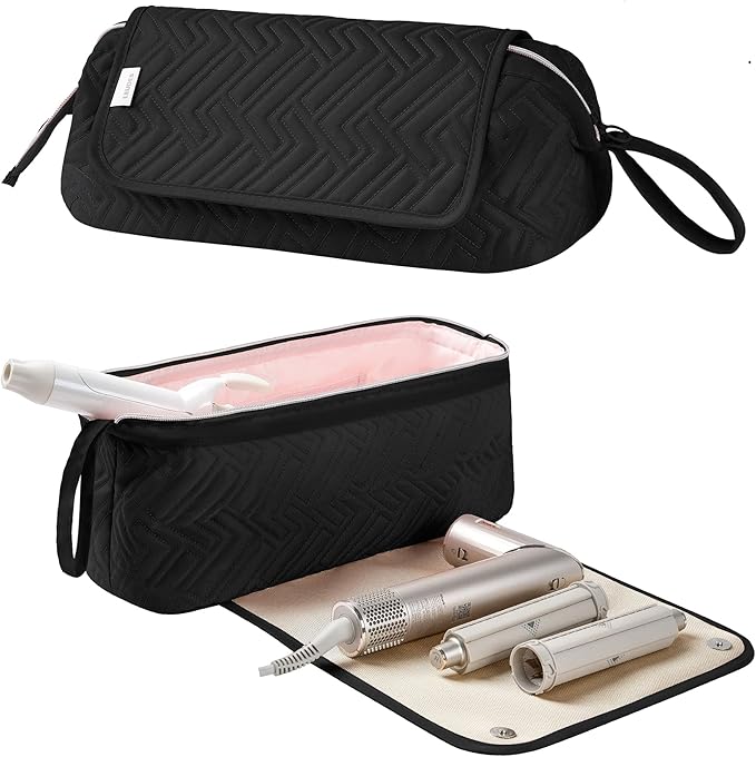 - Practical Design:Doctor bag-style wide opening lets you access to things quickly. The carrying case with well-padded soft interior and middle partition design, which prevent hair curler wand and hair dryer set from bumps, scratches or other physical damage. One large zipper pocket and 2 clear pockets to keep your hair accessories, etc.