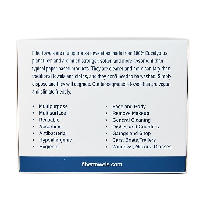 - ULTRASOFT AND SUPER STRONG: Fibertowels are multipurpose towelettes made from 100% Eucalyptus plant fiber, and are much stronger, softer, and more absorbent than typical paper-based products. They are cleaner and more sanitary than traditional towels and cloths, and they don’t need to be washed. Simply dispose and they will degrade. Our biodegradable towelettes are vegan and climate friendly, made from renewable plant fiber
