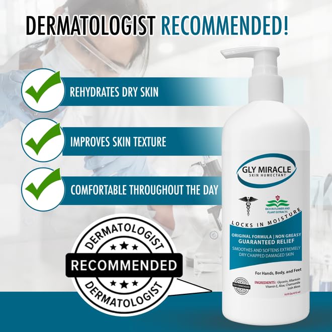 GLY MIRACLE Moisturizing Body Cream Lotion, 16 ounce - Non-Greasy Skin Humectant for Extremely Dry Skin, Hands, Body, and Feet, Light Fresh Scent with Pure Glycerin for Nourishing Hydration.