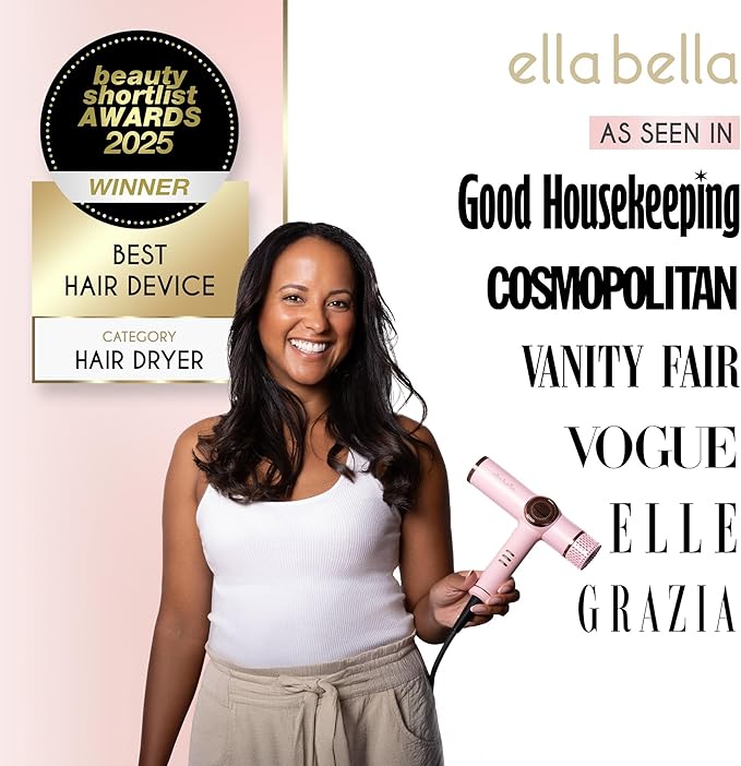 - Versatile Beauty for ALL HAIR TYPES: No matter your hair type or texture, the Ella Bella Hair Dryer is your ultimate companion. With MULTIPLE HEAT SETTINGS to choose from and INTELLIGENT HEAT CONTROL, you can customize your drying experience to suit your specific hair type
