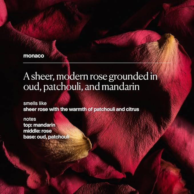 - SHEER, MODERN ROSE SCENT: Infused with our Monaco scent, featuring notes of dry rose, oud, patchouli, and mandarin, for a luxurious and refreshing aroma that appeals to all genders.