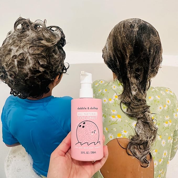 Dabble & Dollop Coconut Body Wash & Shampoo – 3-in-1 Natural Bubble Bath for Kids, No Parabens or Sulfates, Vegan, Gluten-Free, Tear-Free (10oz, Pack of 2)