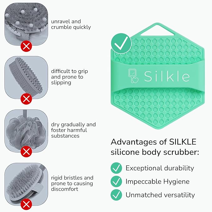 - Gentle, effective exfoliation: Soft, flexible silicone bristles lift away dead skin and surface buildup while you cleanse - non-abrasive for daily showers and suitable for all skin types, including sensitive. Leaves skin feeling smooth and refreshed without harsh scrubbing.