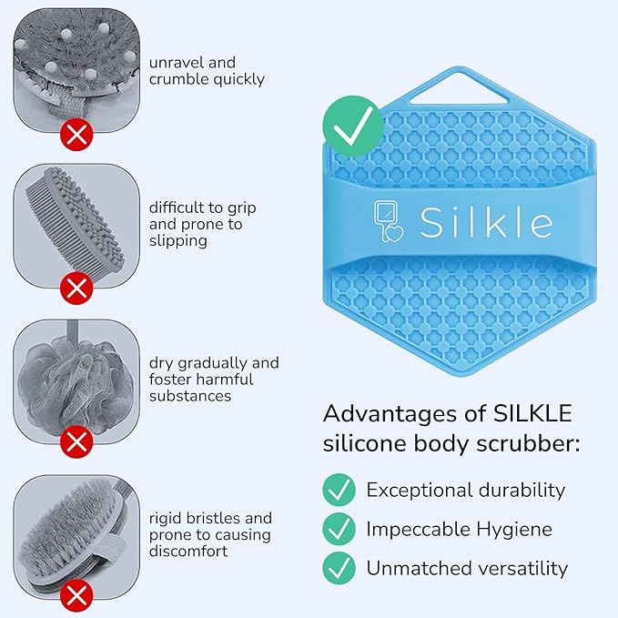 - Gentle, effective exfoliation: Soft, flexible silicone bristles lift away dead skin and surface buildup while you cleanse - non-abrasive for daily showers and suitable for all skin types, including sensitive. Leaves skin feeling smooth and refreshed without harsh scrubbing.