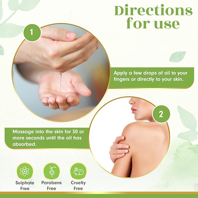 - FAST ABSORBING: Our women organic body oil absorbs quickly into the skin, leaving no greasy residue behind. This means you can use skin oil any time of the day and still be able to put on clothes or engage in other activities without feeling sticky or oily.