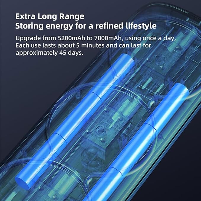 - Intelligent Protection System: There is an intelligent chip installed inside the back scrubber for shower wall, when the rubbing strength is overloaded, in order to protect your skin from being harmed, it will automatically activate the intelligent chip protection system to slow down the speed until it stops. The electric body brush has a long battery life, 5200Ah upgraded to 7800Ah, and can be used once a day for about 5 minutes each time, which can be used for about 45 days.