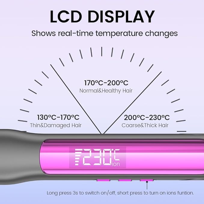 - 【Design Details Praised By Customers】Real-time temperature display LED screen, 30-minute automatic shutdown, wide voltage range (100-240V) for worldwide travel use. The hinged lock design facilitates storage, 7.2ft 360° rotating cord allows styling from any angle. You can switch temperature units(℃/℉).