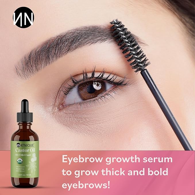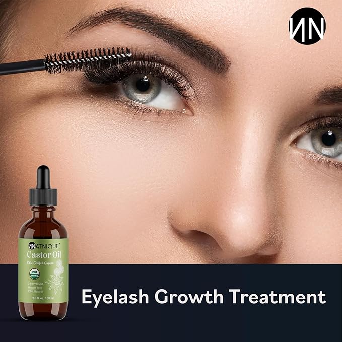Natnique Castor Oil – USDA Certified Organic, 100% Pure Cold Pressed Unrefined Oil for Hair Growth, Eyelashes, Eyebrows & Scalp – Natural Skin Moisturizer, Lash Serum & Hair Treatment (2 Oz)