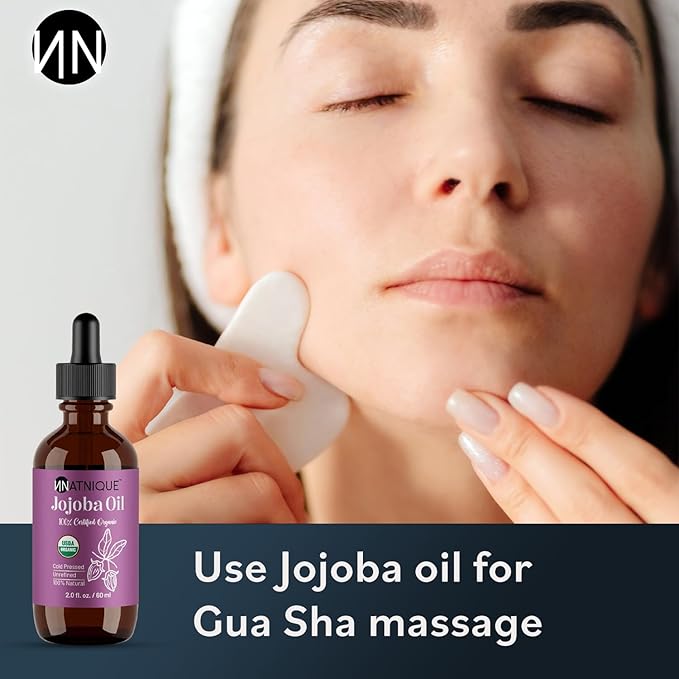 - Gua Sha Massage Oil – Organic jojoba is perfect for gua sha, guasha facial tools & dermaplaning. Lightweight, non-greasy facial oil hydrates skin, supports elasticity & promotes natural rejuvenation.