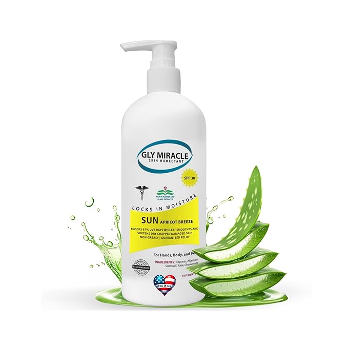 GLY MIRACLE SUN SPF30 Sunscreen Moisturizer: Hydrate and Protect Dry, Cracked Skin with Broad Spectrum UV Block - 16 oz Apricot Breeze