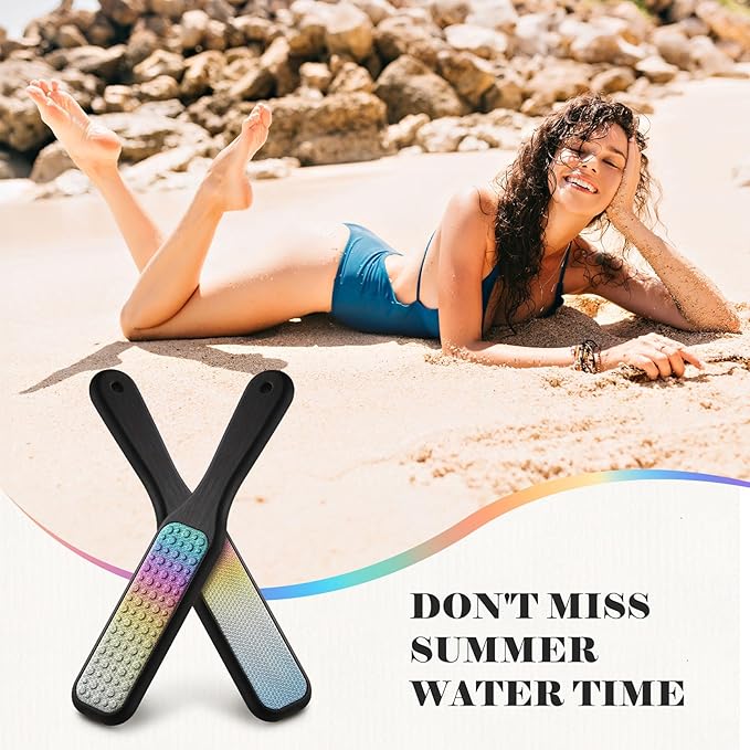- DOUBLE SIDED FOOT FILE - Our foot scraper has two excellent pedicure sides. One side focuses on thicker, harder skin, removing unwanted foot calluses and rough spots. The other foot filing side mainly targets thinner skin to safely remove dead skin and smooth cracks.