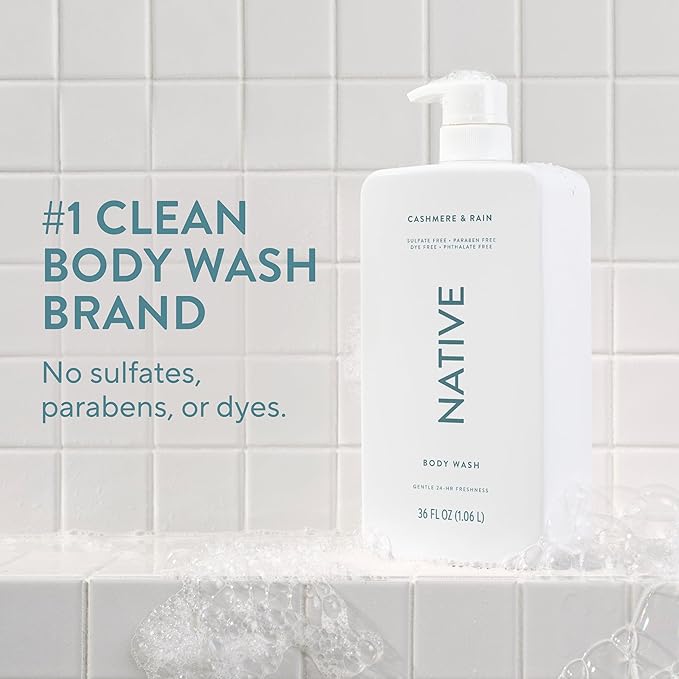 Native Sulfate Free Body Wash Contains Naturally Derived Ingredients | for Women & Men| Cashmere & Rain, 36 oz