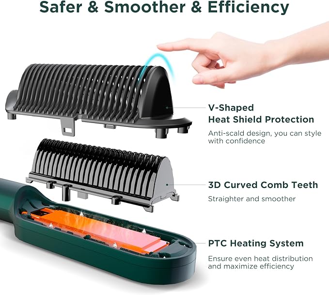 - Efficient and Effortless Styling - Prizm hair straightener brush features curved comb teeth with keratin ceramic coating that reach the root and deliver even heat distribution, helping to maintain the strength of your hair, reducing breakage, while ensuring a smooth finish from root to tip. Bring a more effective hair straightening salon experience, and save your time.