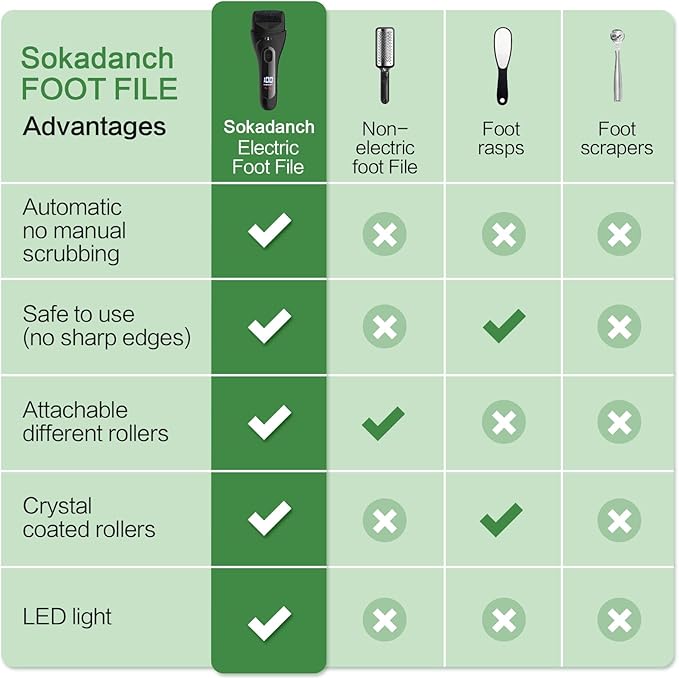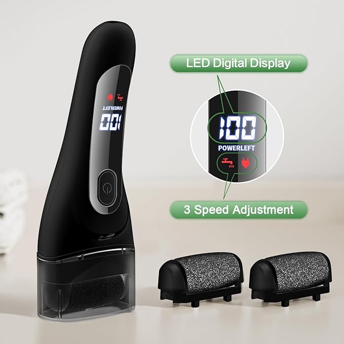- Comfortable Experience: This foot file electric adopts IPX7 waterproof technology, which allows you to use it freely and conveniently in the shower, and you can also remove the rollers after use and rinse it easily under the tap water; This foot sanders for feet is ergonomically designed with a soft-touch strong grip, which can be non-slip and easy to manoeuvre in wet and dry environments.
