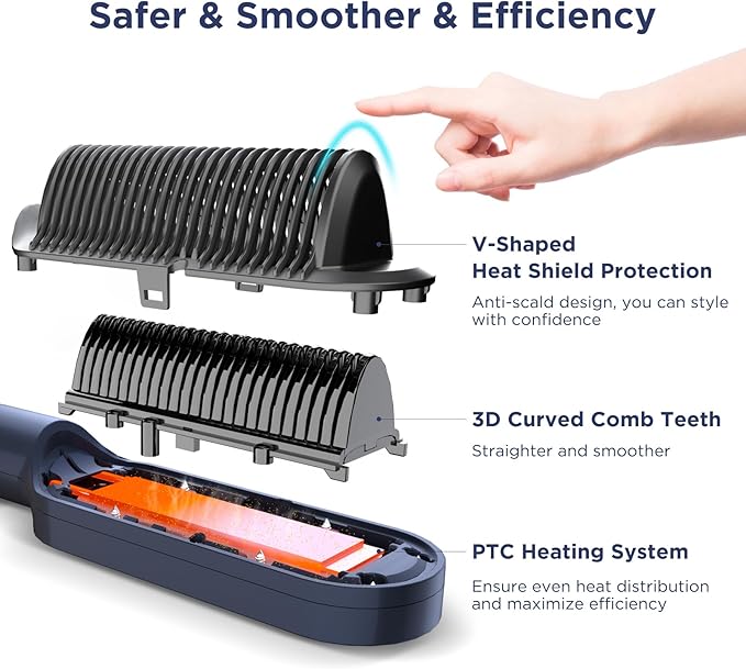 - Efficient and Effortless Styling - Prizm hair straightener brush features curved comb teeth with keratin ceramic coating that reach the root and deliver even heat distribution, helping to maintain the strength of your hair, reducing breakage, while ensuring a smooth finish from root to tip. Bring a more effective hair straightening salon experience, and save your time.