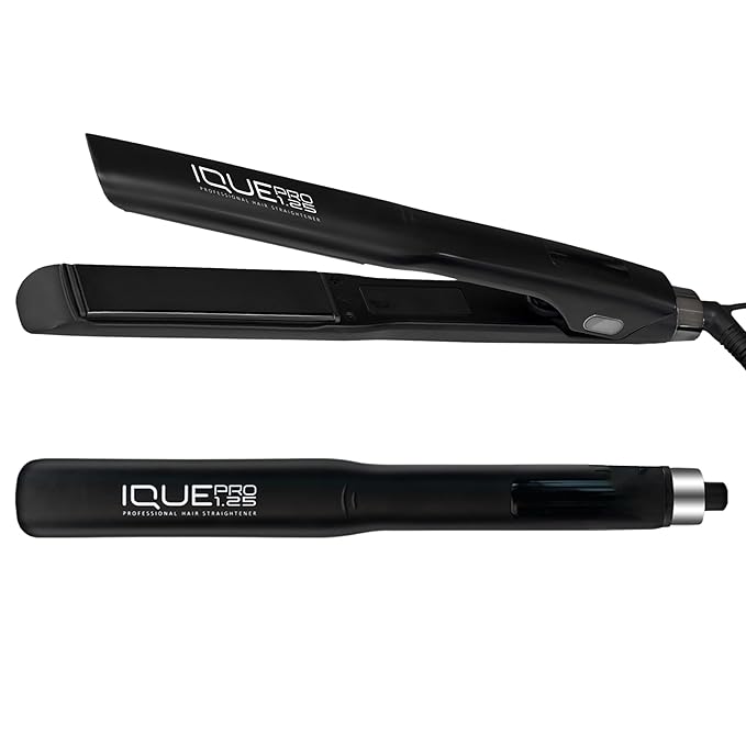 iQUE 1.25” Nano Titanium Hair Straightener & Curler 2-in-1 – Fast Heat-Up Flat Iron with Ionic Technology, Floating Plates, LCD Display, Adjustable Temp to 480°F, Dual Voltage for All Hair Types