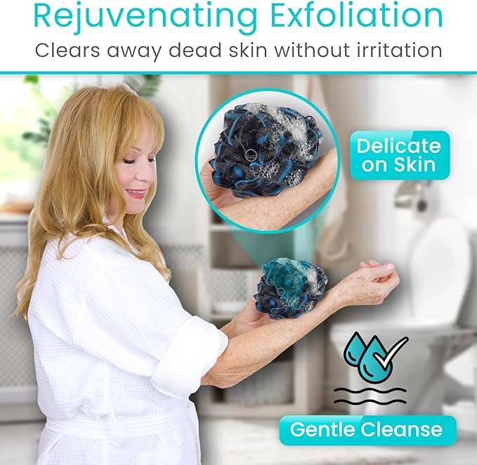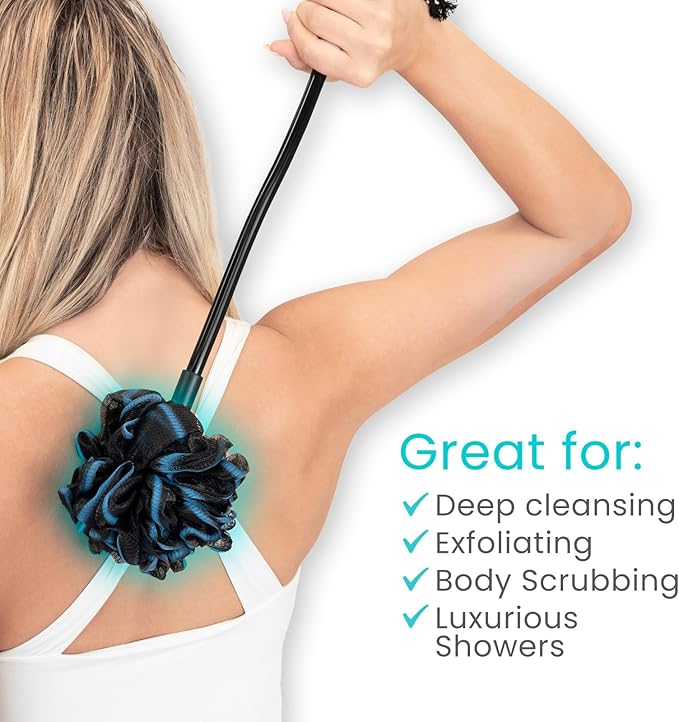 - Vive Bendable Loofah Brush with Long Handle - Extended Luffa Scrubber - Shower Stick w/ Loofa for Exfoliating Skin - Bath Sponge for Women and Men