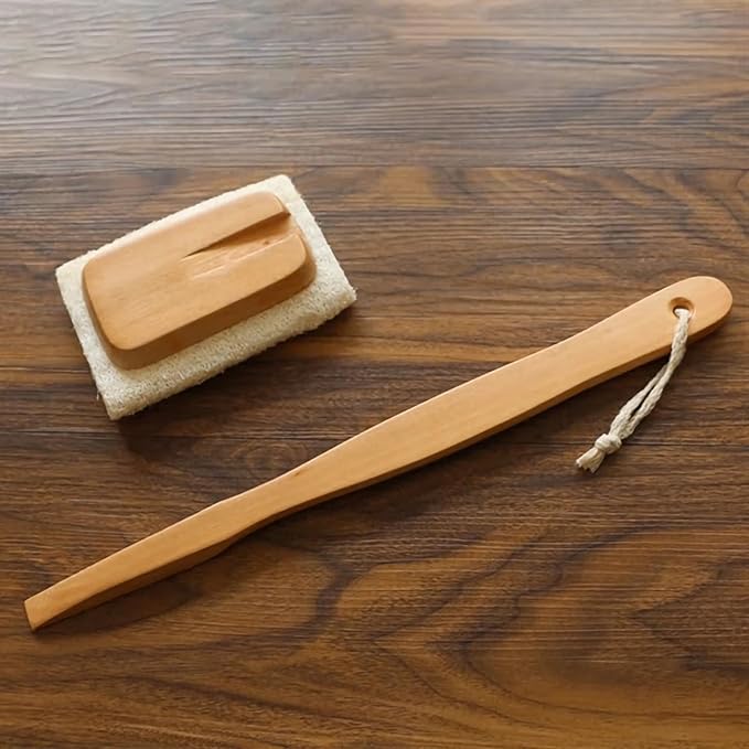 - Detachable Long Wooden Handle for Easy Reach: Each brush includes a detachable wooden handle, which extends your reach and allows you to clean your back and other hard-to-reach areas with ease. The ergonomic design ensures a comfortable grip, making it easy to use without straining your arms.