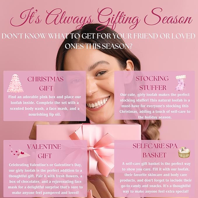 - Spa-Like Experience: Enjoy a luxurious, spa-like exfoliation at home with our loufa puffs leaving your skin refreshed and rejuvenated after every shower. Perfect scrub body scrubber. This is a shower essential for women.