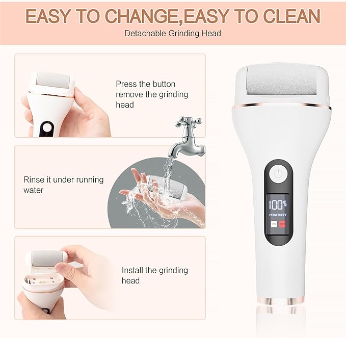 - 【8 LARGER GRINDING HEADS】: With more Bigger , more Larger Quartz Crystals Roller Heads, you could enjoy a more Faster,Finer, Effective, Stable Grinding callus remove foot care at home.