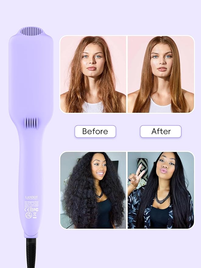 - π Thoughtfully Designed for Your Haircare Journey: LANDOT straightener brush featuring dual voltage for global use, automatic shut-off for safety, and a comfortable grip, itβs the reliable hair straightening tool that cares as much about your hairβs health as you do.