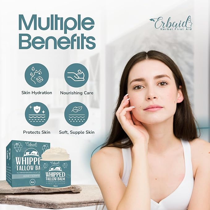 - GRASS-FED BEFF TALLOW & HONEY BALM: An indulgent beef tallow salve enriched with essential oils and raw honey designed to nourish your skin for a natural glow and holistic wellness.