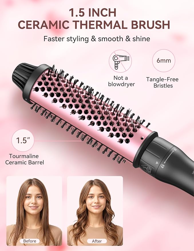- 💖【Versatile Styling Tool】LANDOT Thermal Brush is a 1-1/2 inch heated round brush with ceramic ionic tourmaline barrel that heats up for smooth blowouts and voluminous curls. REDUCE FRIZZ & UP SHINE