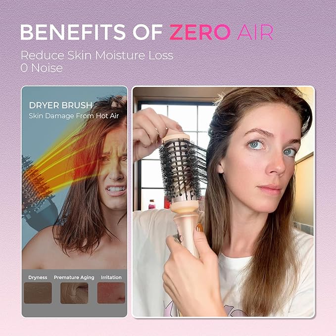 - Flexi-Fit Tech: 1.7 inch TYMO STYLUX thermal brush with adjustable nylon bristles minimize hair pulling, easily gliding through without tugging. The staggered bristle design ensures even hair distribution around the barrel, optimizing heat application and providing a secure hold for styling. Then, thermal blowout brush is equipped with a 30mins auto shut-off to guarantee security. [Please note: TYMO thermal brush is not a hair dryer brush and cannot dry hair.]