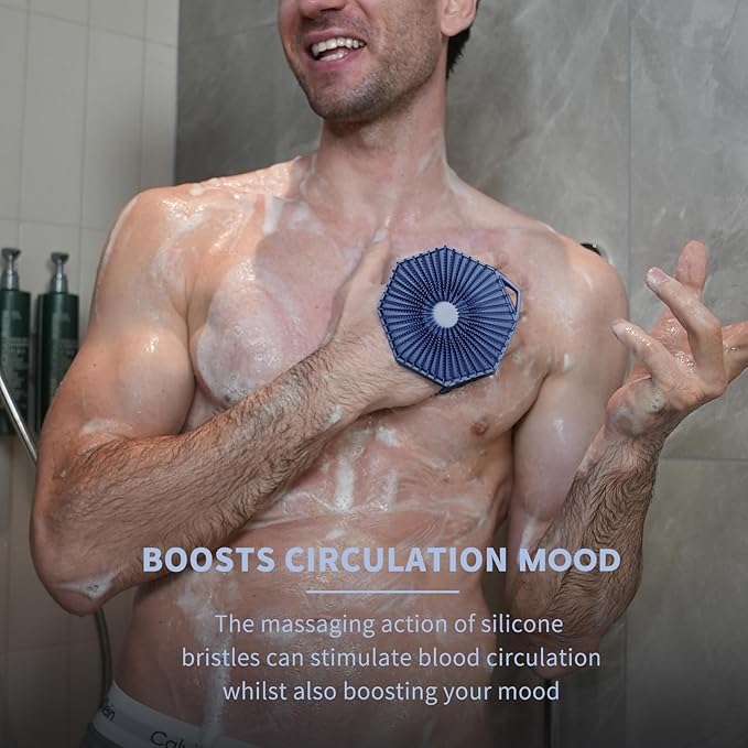 iTOKGOK® 2-in-1 Silver-Infused Silicone Body Scrubber, Double-Sided Design Body Brush Body Scrubber Exfoliating Body Brushes for Sensitive Skin for Showering, Silicone Loofah - Blue