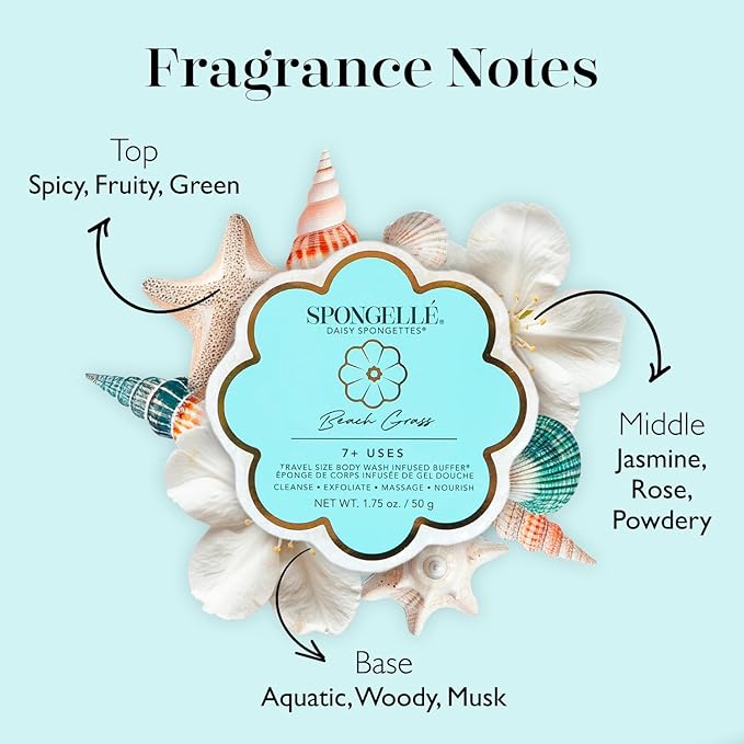 Spongelle Beach Grass Spongette Loofah Body Scrubber | Bath & Shower Loofah for Women | Body Scrubber Exfoliator with Body Wash Infused Sponge | 5+ uses | Crisp Marine, Green Tea & White Amber