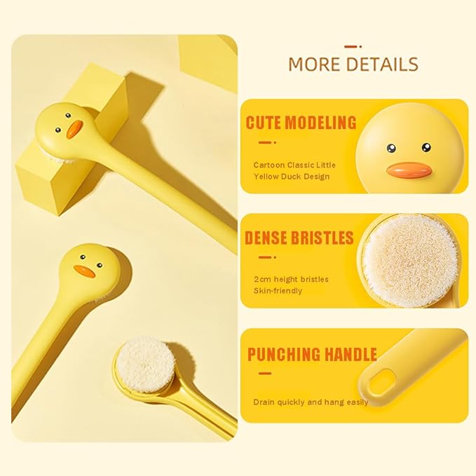 - 【Cartoon Shape】The cute duck-shaped brush and flower-shaped hook will bring you an unprecedented experience in bathing,which is compression resistant, fall resistant and safer.