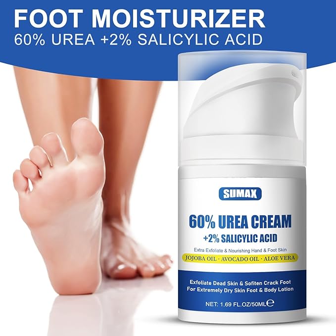 - Urea Cream 60%: Foot cream containing 60% urea, which has the functions of moisturizing skin, cutin softening, relieving itching and so on. 2% salicylic acid is added to effectively target dry and cracked skin. Foot cream for calluses and dry feet.
