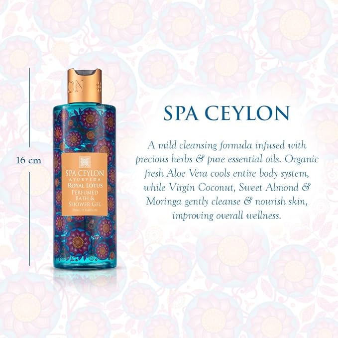 SPA CEYLON Royal Lotus Perfumed Bath & Shower Gel, Natural Body Wash, Moisturizing Body Cleanser, Foaming Gel, Paraben, Sulphate & Fragrance-Free, Suitable For All Skin Types