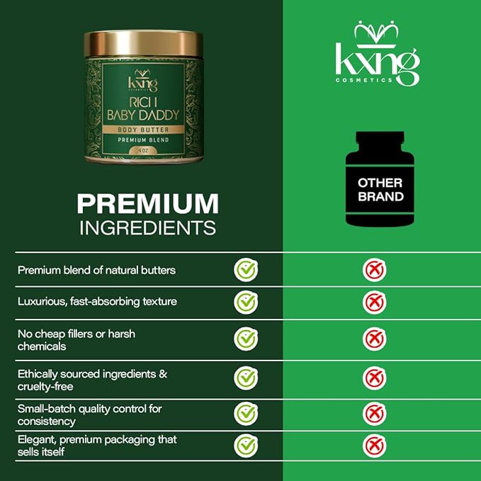 KXNG Cosmetics Luxury Shea Body Butter Cream β 4oz | Organic Body Butter for Men & Women with Cocoa, Mango & Coconut Oil | Moisturizing Cream for Hands, Feet & All Skin Types β Rich Baby Daddy