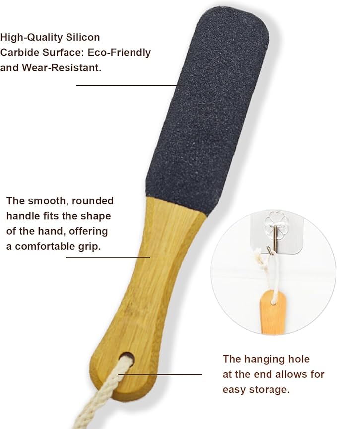 - Ultimate Foot Care:This microplane foot file features high-quality pumice and an ergonomic wooden handle for an exceptional care experience. Its durable design prevents corrosion and lasts up to 1-2 years, perfect for everyday use. Compact and portable, it allows you to pamper your feet anytime, while the wooden handle provides a secure grip for quick and effective removal of dead skin.