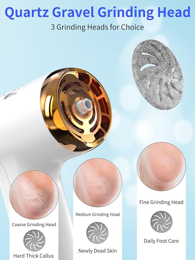 - Electric callus Remover: The feet callus remover comes with 3 different grinding heads and 2 working modes.The scientific speed of 1900/2200 rpm turns dry, hard callused skin into soft and smooth skin in minutes