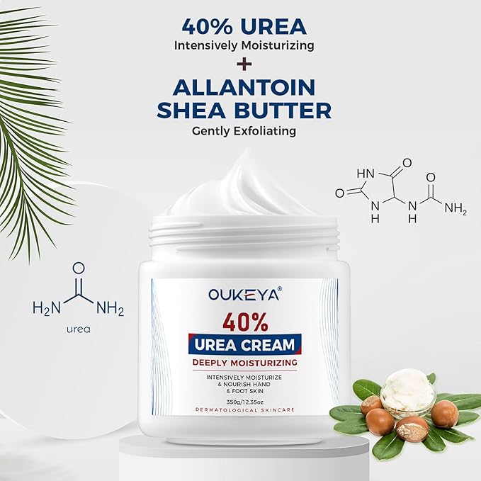 - 【Effective Skin Solution】Our urea cream is dermatologist-tested Medical graded nursing urea cream. Intensively moisturize and nourish the dry and cracked skin for your hands, feet, and even elbows and knees. Repairs dry, cracked, rough, bumpy, and aged skin. Minimizes appearance of corns and calluses. Softens and Nourishes thick, gentle exfoliates scales and dead derma. OUKEYA 40 percent urea cream will bring you silky soft moisturized touch.