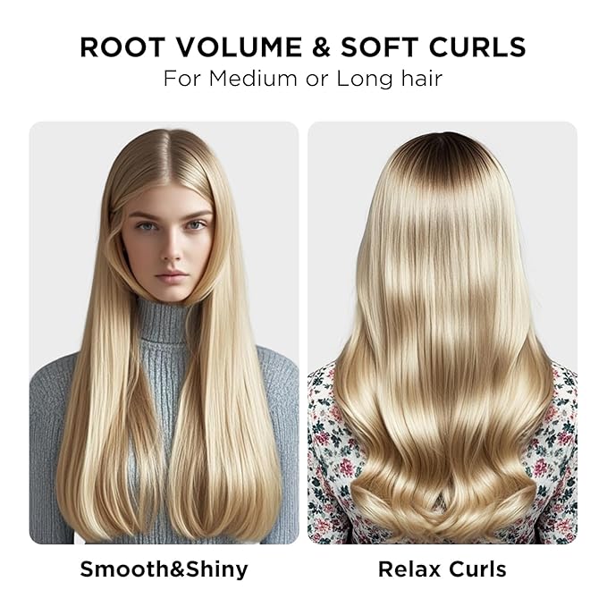 - Curling Iron and Brush in One: The unique NOT BLOW AIR curling brush is designed with thermal bristles that can grab and gently glide through hair, helping to wrap the hair around the barrel for smooth styling. Ideal for creating loose curls, voluminous looks, and gorgeous bangs. Notice: This isn't a blow dryer, it can't be used for drying hair and it also can't automatically rotate.