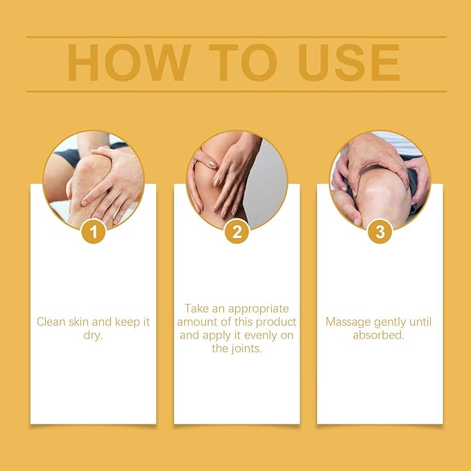 - First wash and dry the area you want to apply, apply a generous amount of bee venom joint and bone cream , massage the cream into the skin until it is absorbed. Apply 3-4 times per day for 7-10 days, then as needed